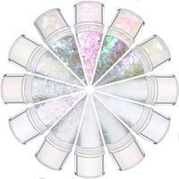크로스 보더 핫 다채로운 흰색 3D LED 플라스틱 네일 아트 세트 12 색 혼합 스팽글 플래시 그라데이션 레이저 파우더 병